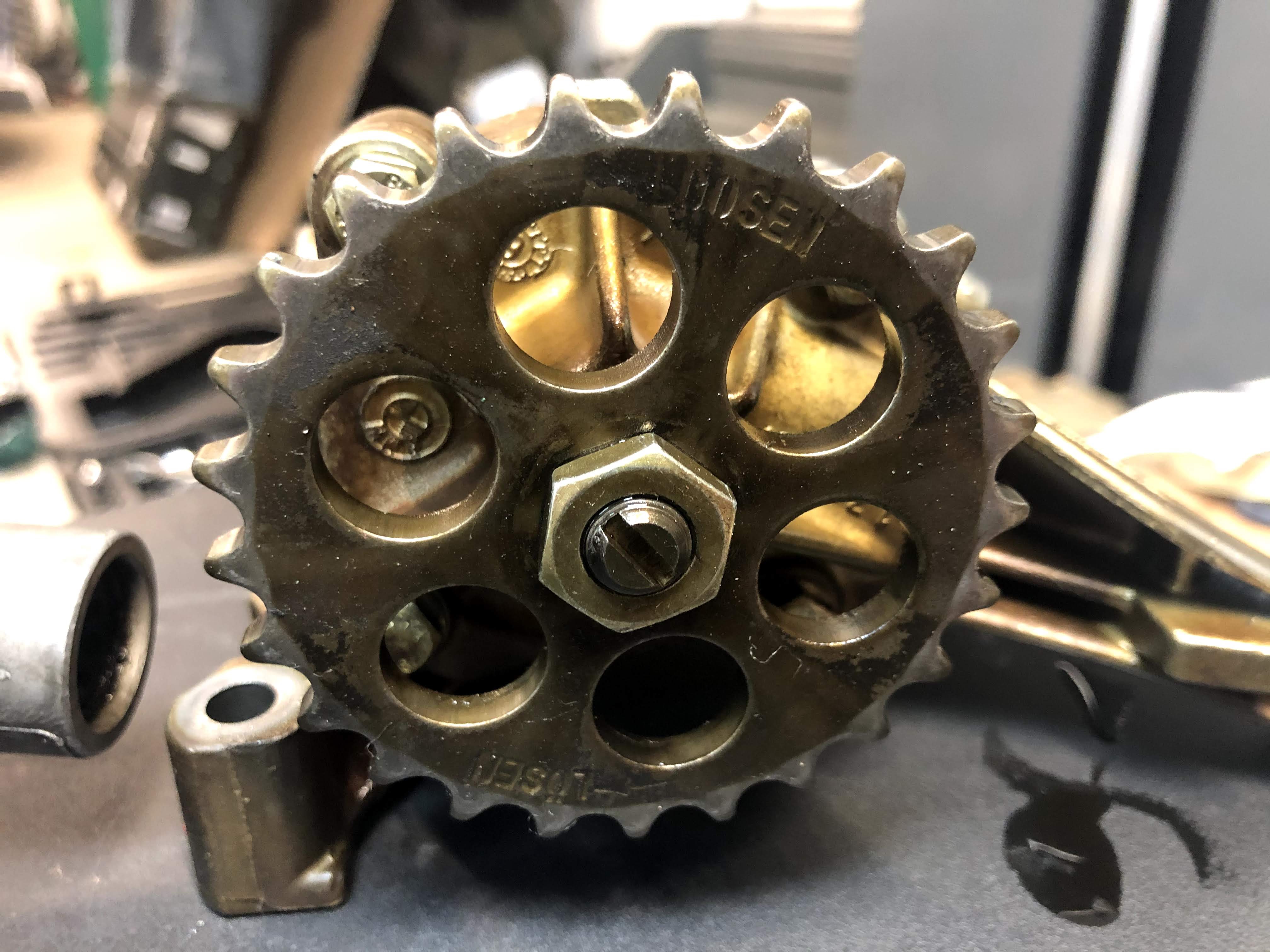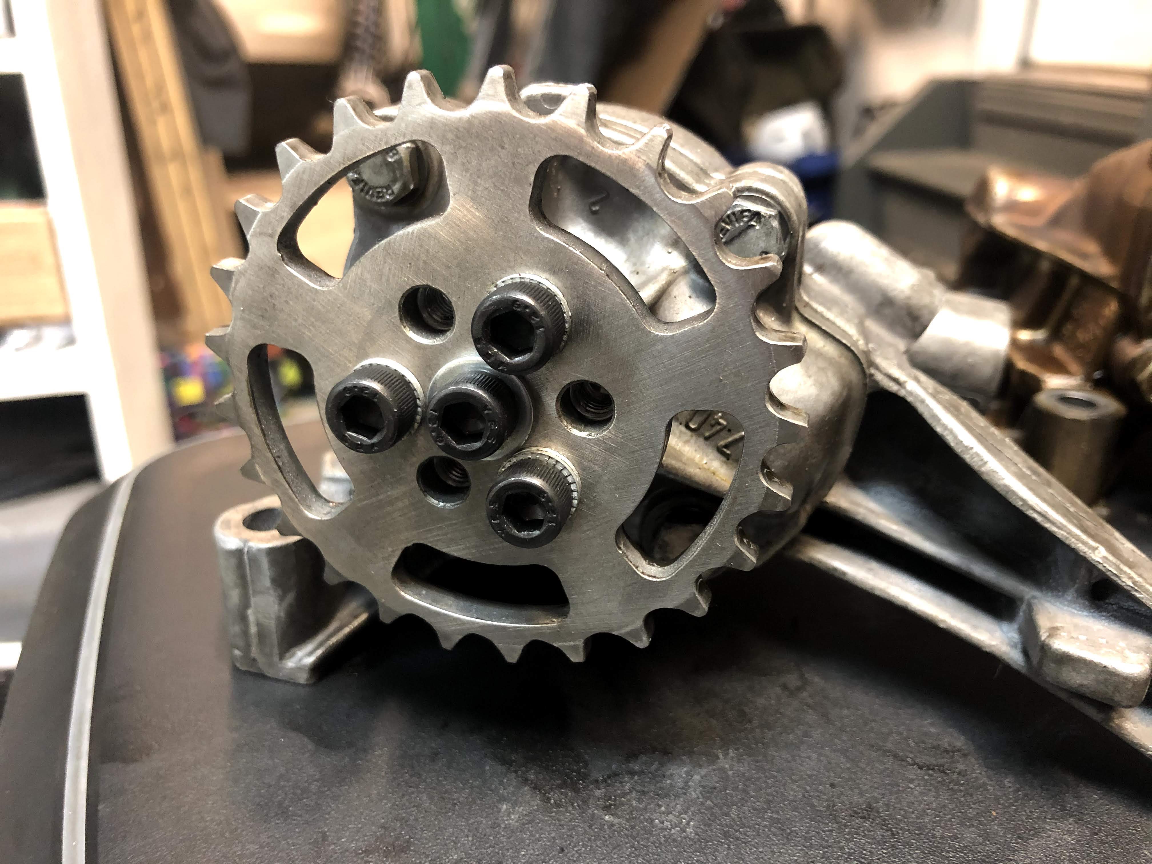 - The sprocket is secured by 4 steel fasteners (with Nord-Lock washers), not one