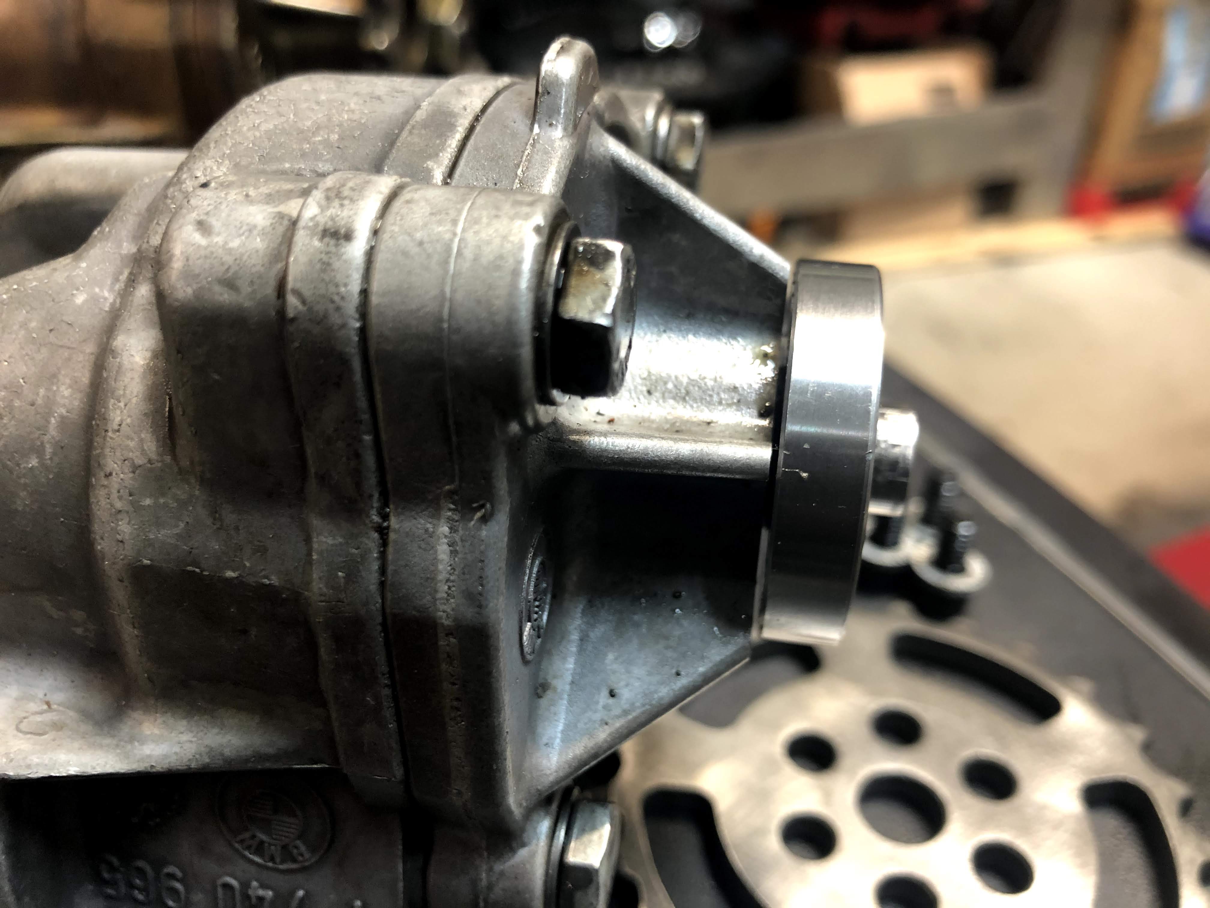 The next step is getting the actual oil pump mounted on the block. Unfortunately, the PRD upgraded oil pump didn’t simply bolt in place of my stock oil pump. After talking with the experts at Seems Legit Garage (where I purchased the PRD oil pump), I learned that the M50 family of engine blocks changed through the years and this issue is fairly common.