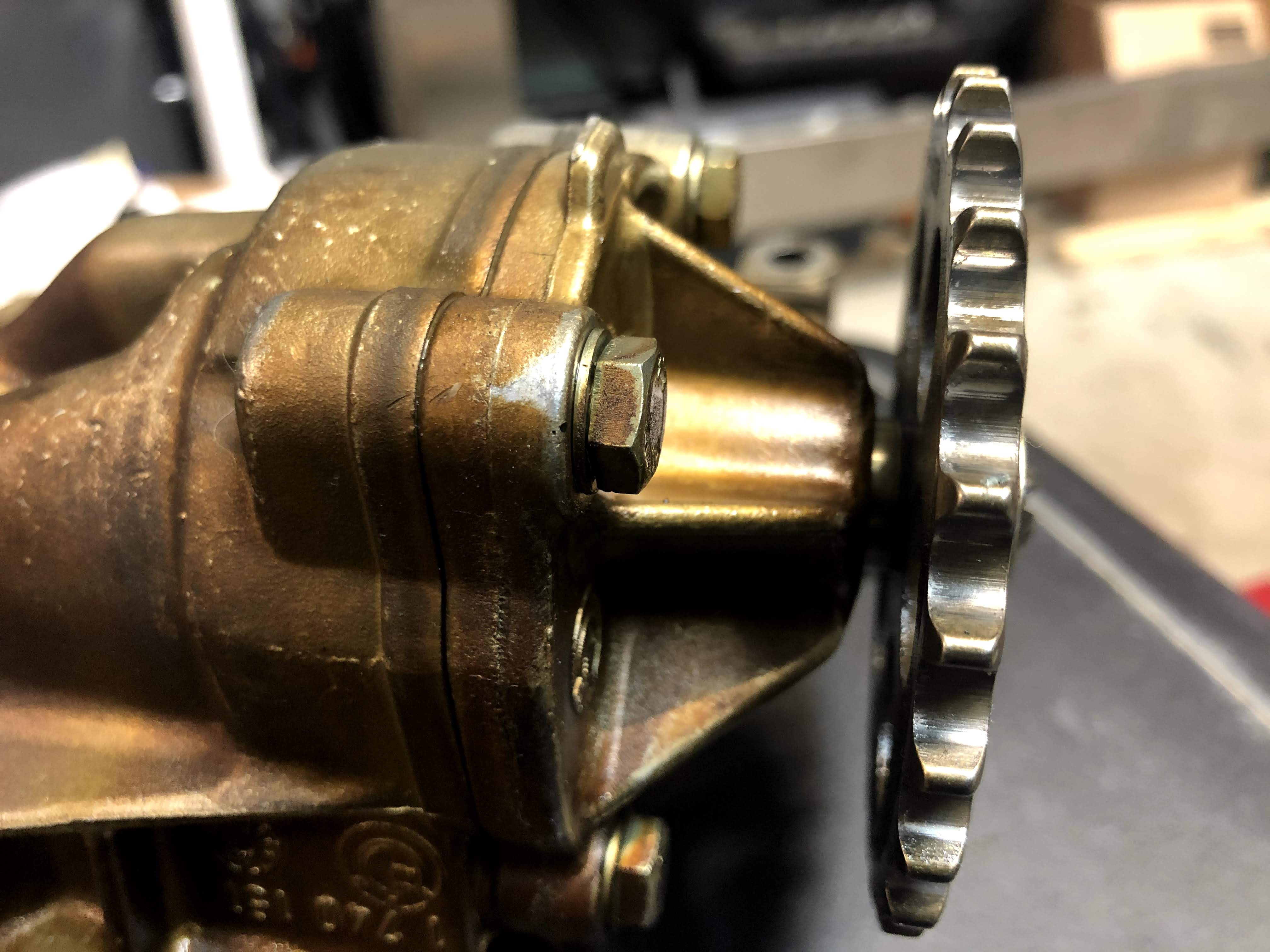 - The nut securing the sprocket to the oil pump shaft can back off. Once the nut is off, the sprocket will detach from the shaft.