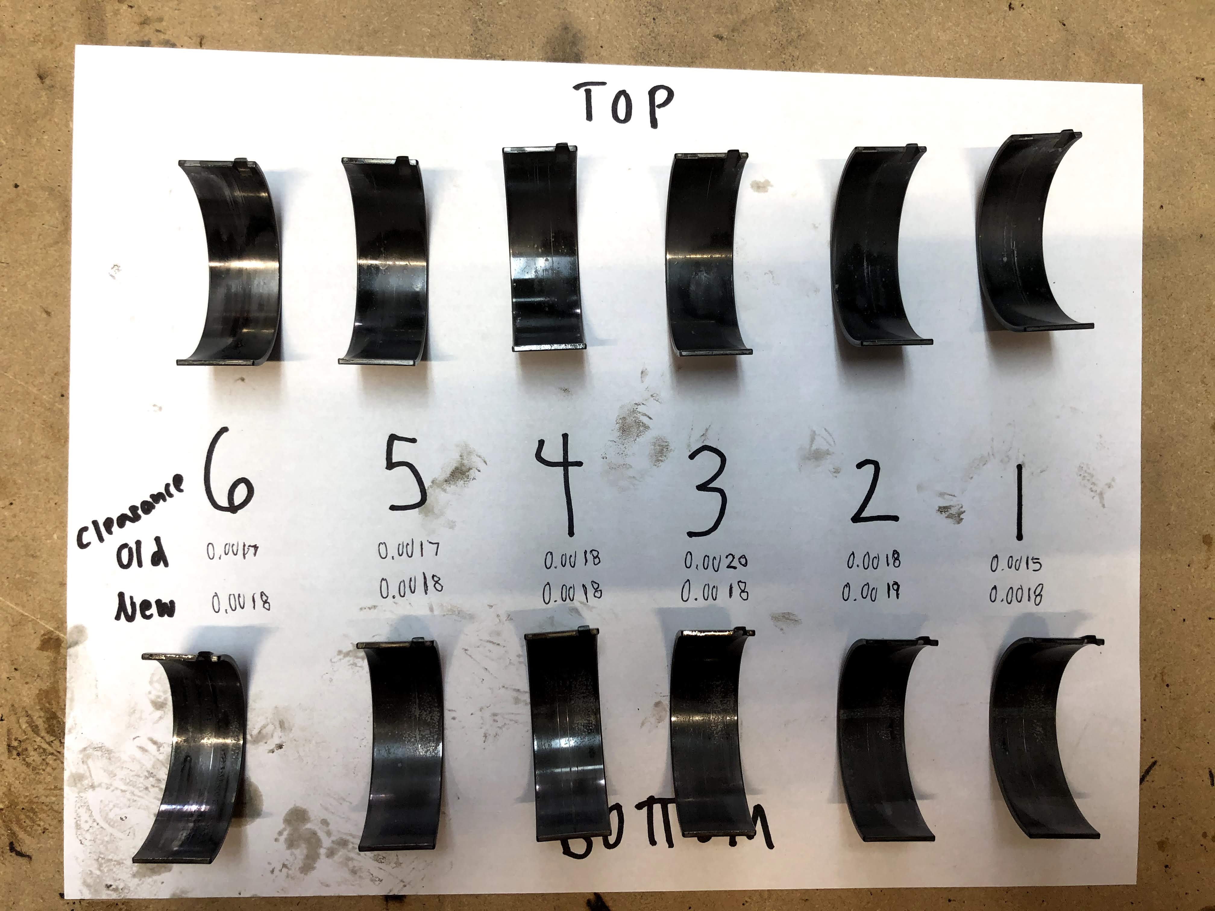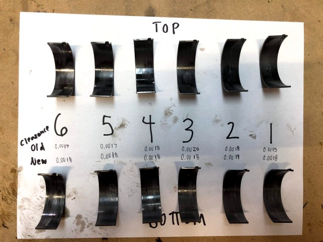 Here are the clearance readings for each cylinder and both old and new connecting rod bearings.