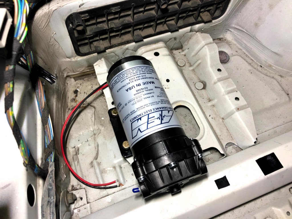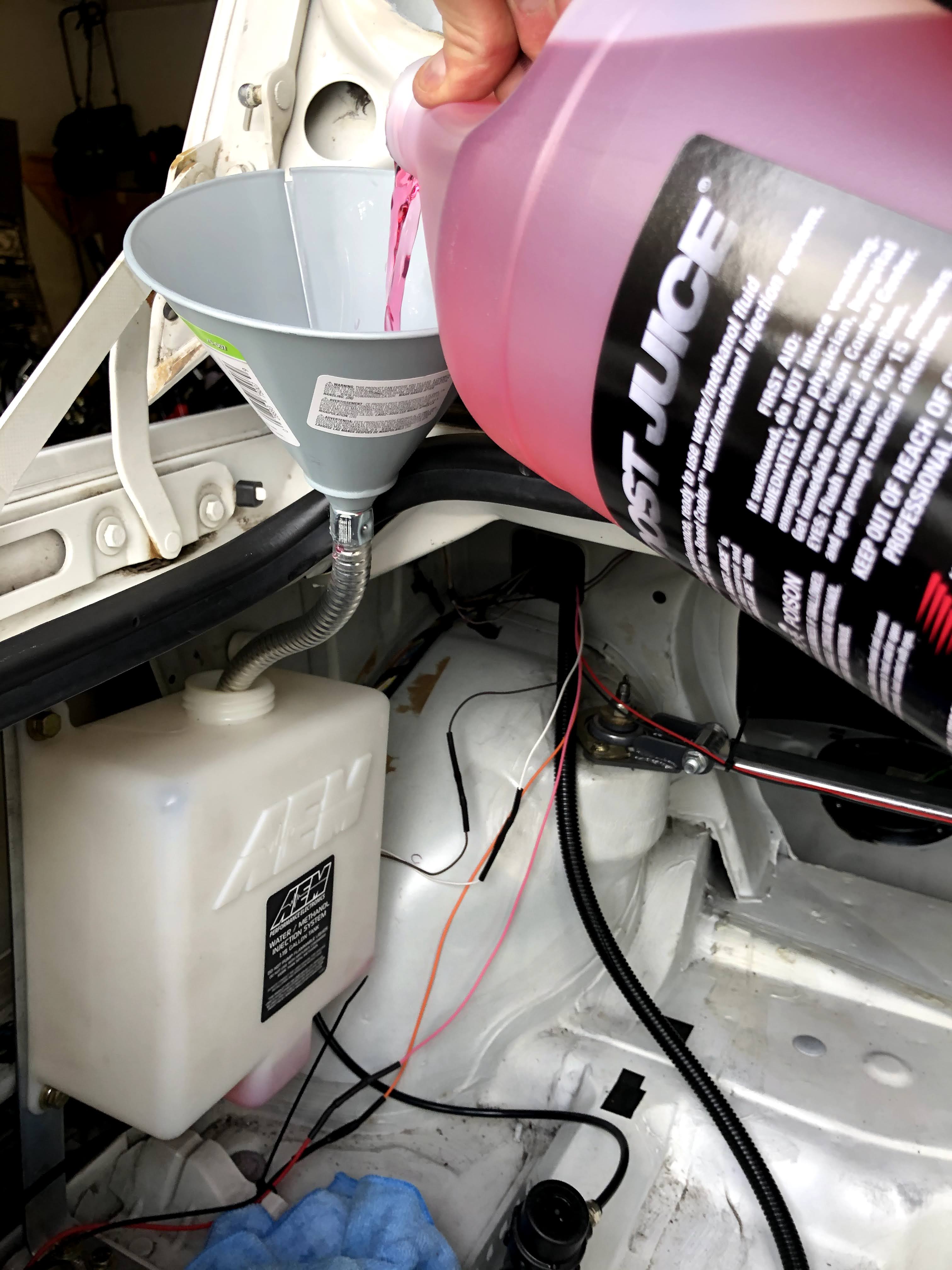 I then turned the ignition on (to provide power to the AEM system) and flushed it with water using the “TEST” button on the controller.