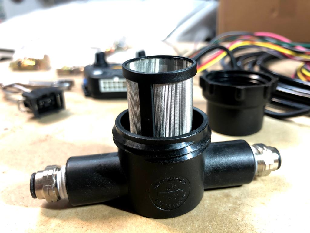 Filter canister with the cap off so that you can see the screen. I purchased the filter separately, it’s not included with the kit.