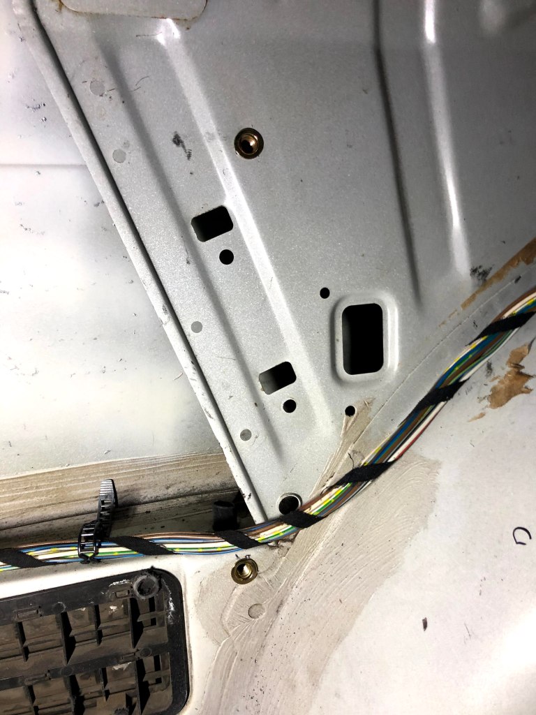 It ends up that you need to send about half the wires to the back of the car (heading right in the picture above), while the other half will head under the dash.