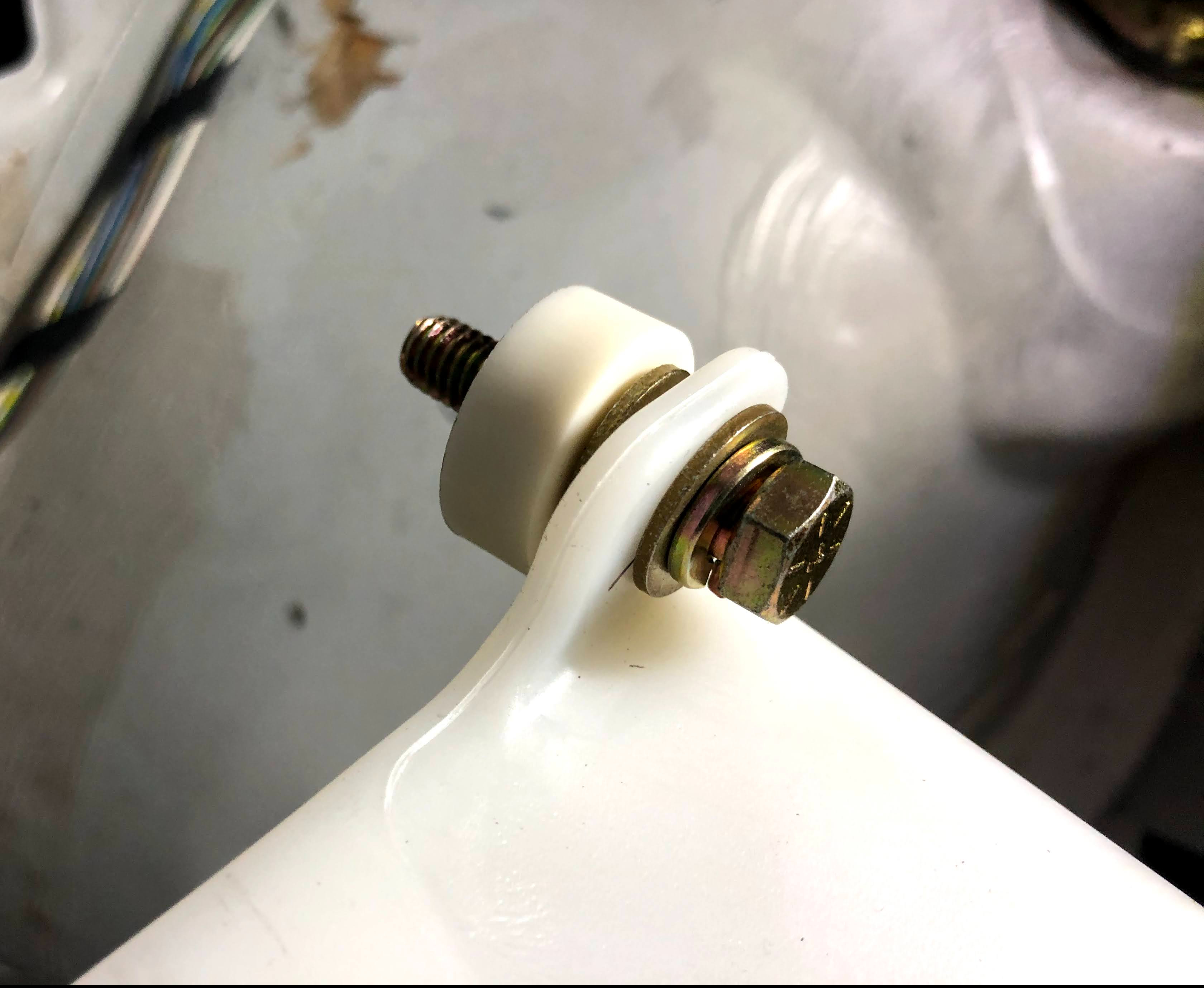 In order to provide enough clearance from some protrusions in the sheetmetal, I had to use nylon isolators when installing the tank (as pictured above).