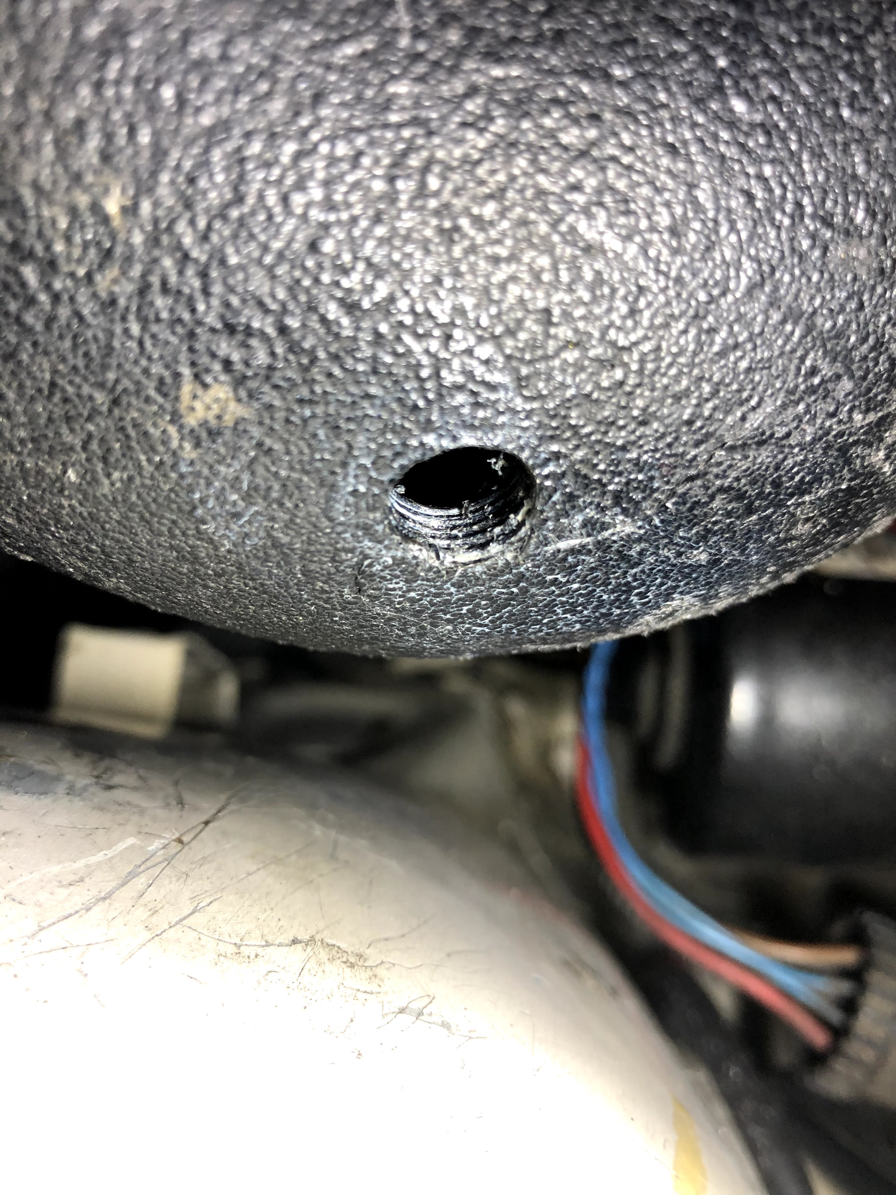 In the picture above you can see the final threaded hole in the plastic boost pipe. Notice how there are actually around 4 full threads which should be plenty to securely mount the nozzle.