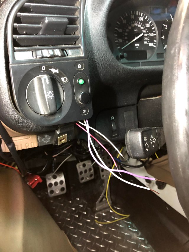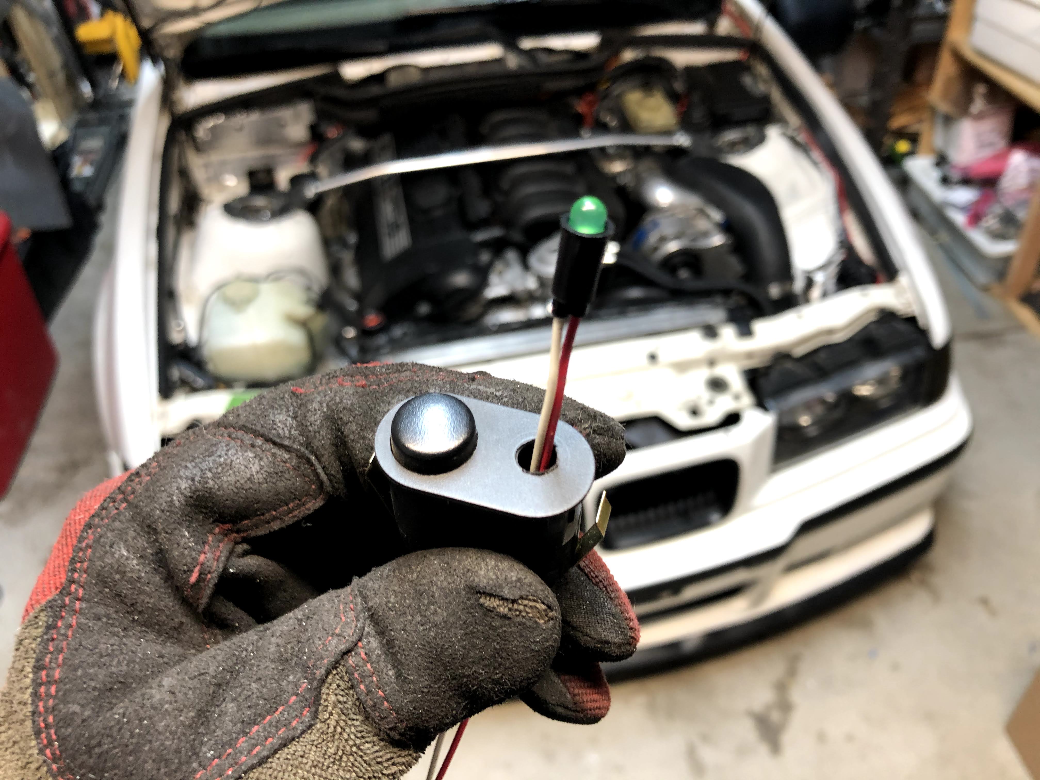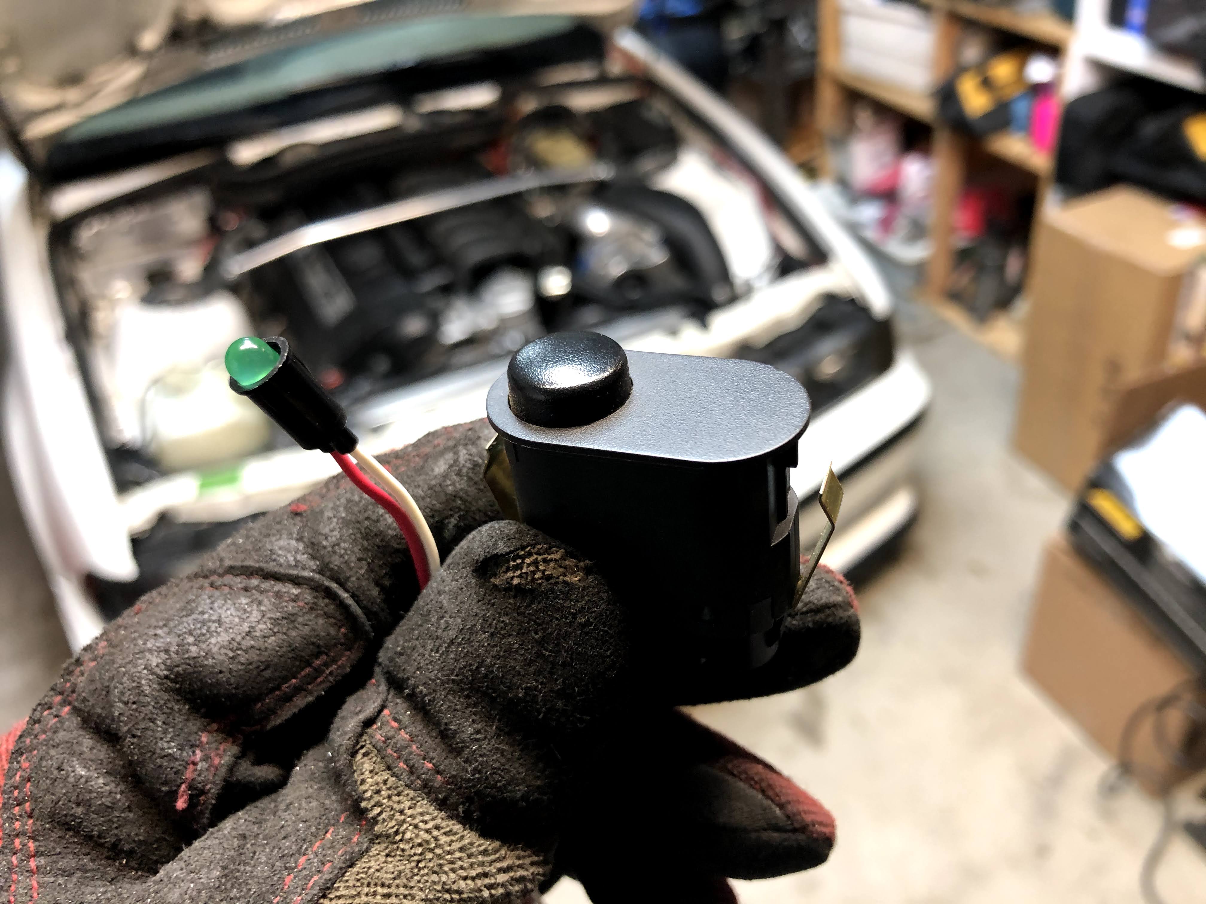 I then mounted the AEM system status green LED in the switch for the fog lights. It’s such a small LED and the fog light button was a very convenient location.