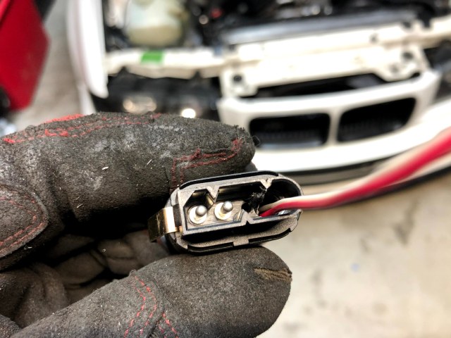 Here’s a rear view of the connector. Notice how I didn’t even get into the fog light pins.